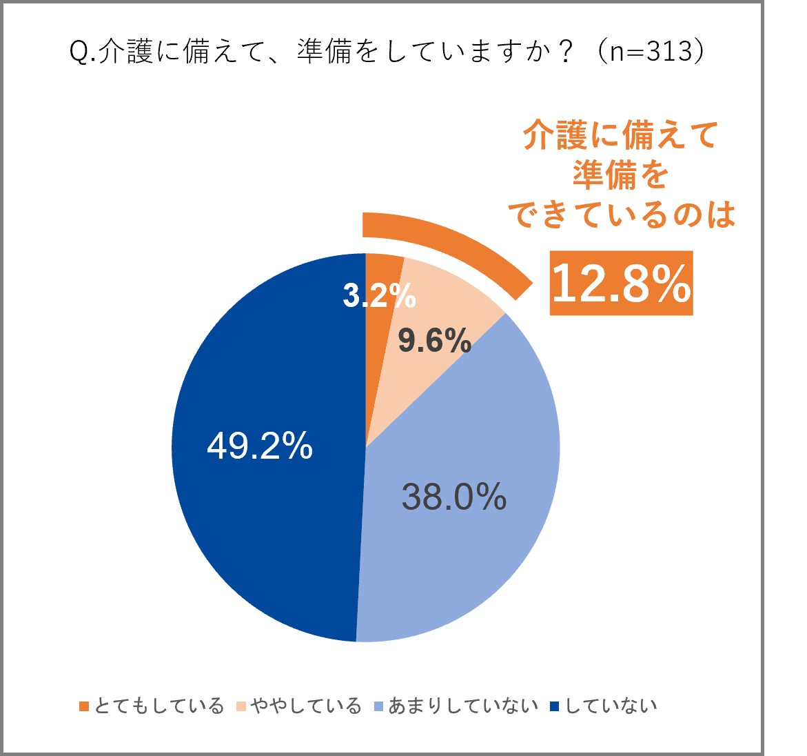 しかし実際に介護に備えて準備をしていると答えた方は12.8%と少数に。