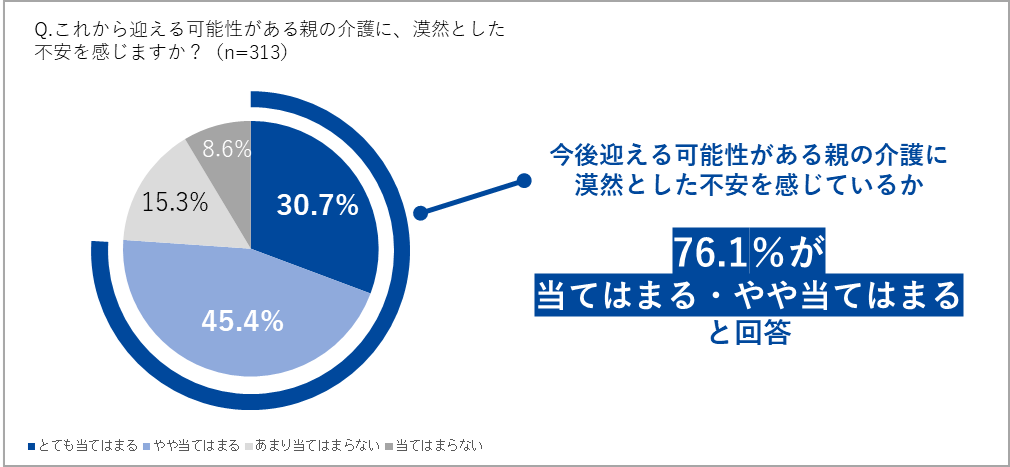 今後迎える可能性がある親の介護に、漠然とした不安を感じている方は76.1%も。