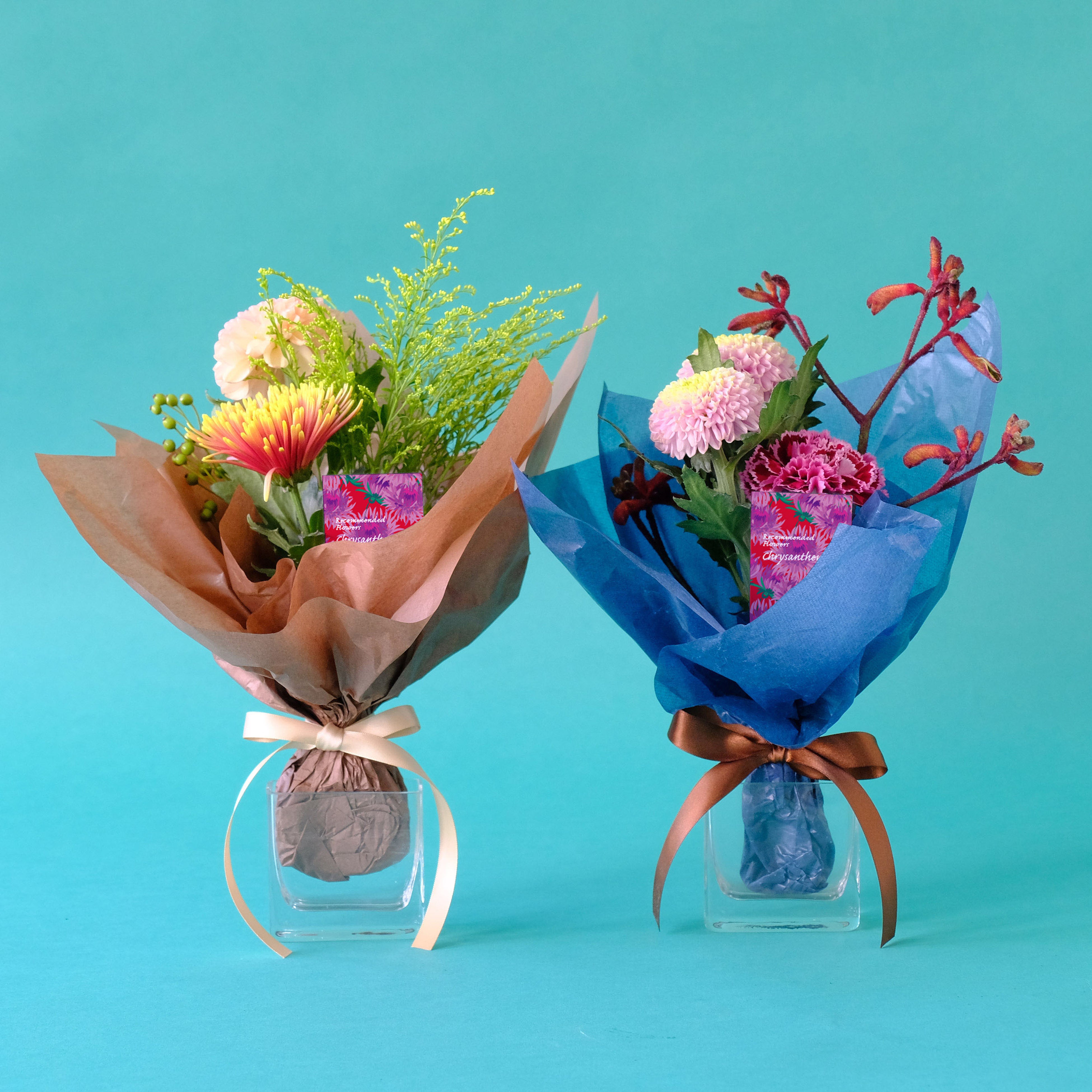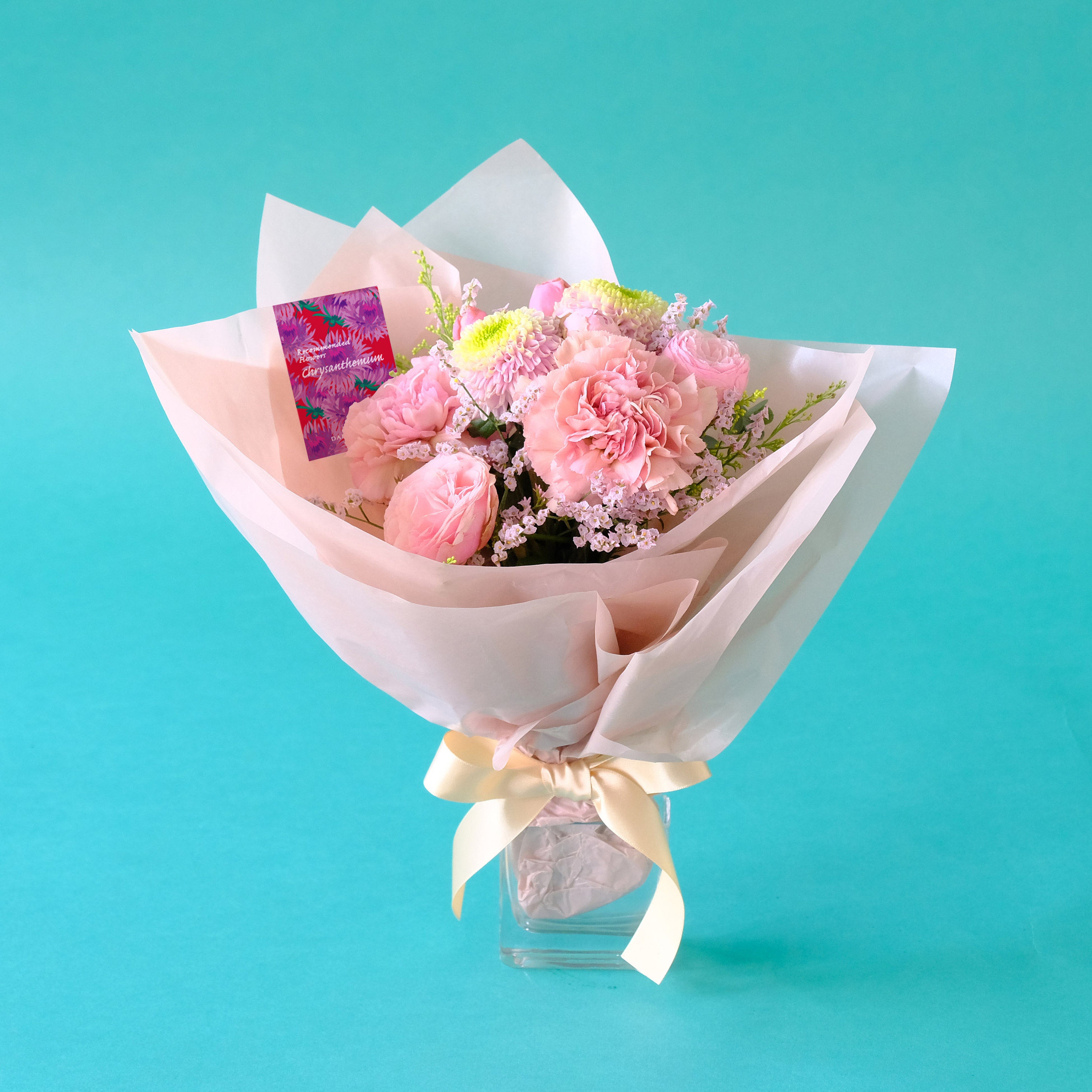 ショップおすすめのマムをシンプルなブーケに仕上げました。コンパクトなサイズでちょっとしたギフトやご自宅用にもおすすめです。