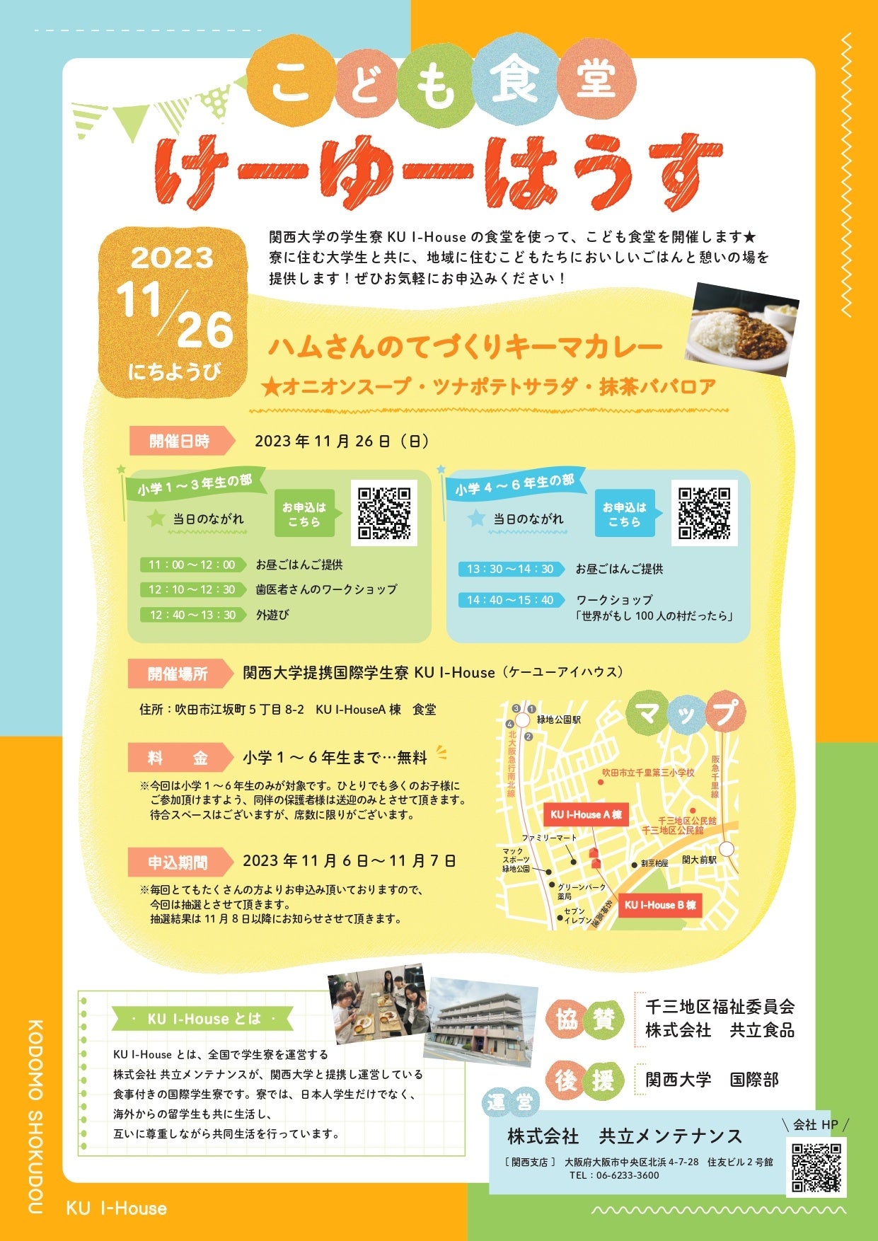 関西大学提携国際学生寮「KU I-House」で『こども食堂 国際交流イベント』を開催します!