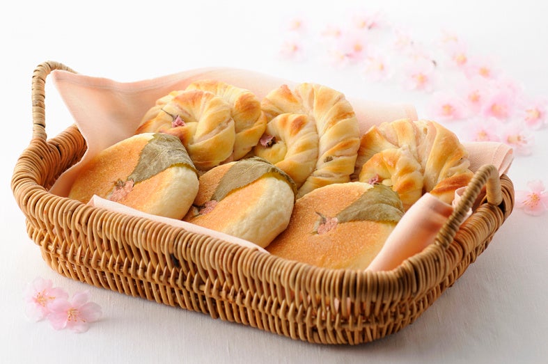 パン生地に桜餡を練り混ぜ、桜の花の形に焼き上げました。優しいパンの甘さと桜餡のほのかな甘みが調和した春らしいパンです。