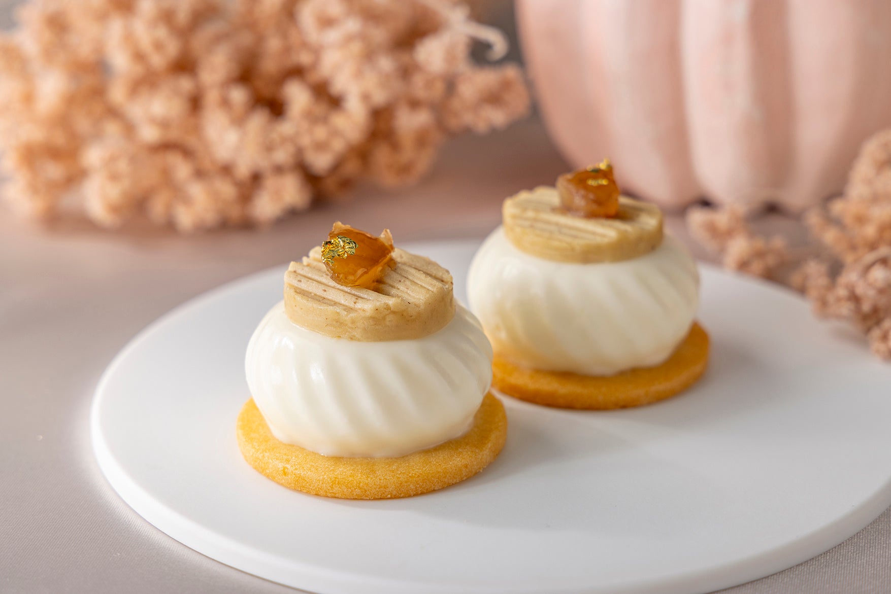 多くの食材が収穫期を迎え、スイーツも一層おいしく感じられる秋の季節に、鹿児島県産の金時いもや愛媛県産の栗など旬の味覚をふんだんに使用したアフタヌーンティーをお届けします。食感や風味の異なる食材の組み合わせで変化と広がりのある味わいに仕上げたスイーツや、かぼちゃに見立てたシルエットが秋らしさを演出するミニバーガーを含む、スイーツ5種とセイボリー3種をご用意します。開業以来変わらぬレシピで人気のスコーンはプレーンに加え、ピーカンナッツとメープルの新作が登場。クロテッドクリームと、マルメロと洋梨ジャムを添えてご提供します。さらに、ウェルカムドリンクにて京都宇治の老舗、山政小山園のほうじ茶を使用した「いちごとラズベリーのほうじ茶ラテ」をご用意。芳醇な香りで“スイート”な世界にお客様を誘います。