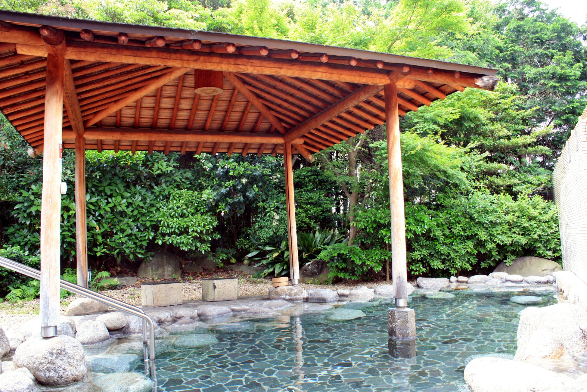 約30度、35度、40度の3つの異なる温度の湯舟と、畑毛温泉「韮山湯」、自家源泉「大仙湯」の2種の温泉がお楽しみいただけます。また四季折々の草花咲く、庭園露天風呂、サウナハウスを整えております。