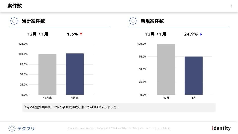 1月の新規案件数は、12月の新規案件数と比べて24.9%減少しました。