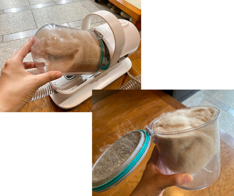 - ・1Lのダストカップ:ペットの抜け毛をブラシでかき出し、直接クリアビンに吸いこみます。またダストカップは本体から取り出して水洗い可能。ワンタッチで毛を捨てられ、飼い主さんも使いやすい