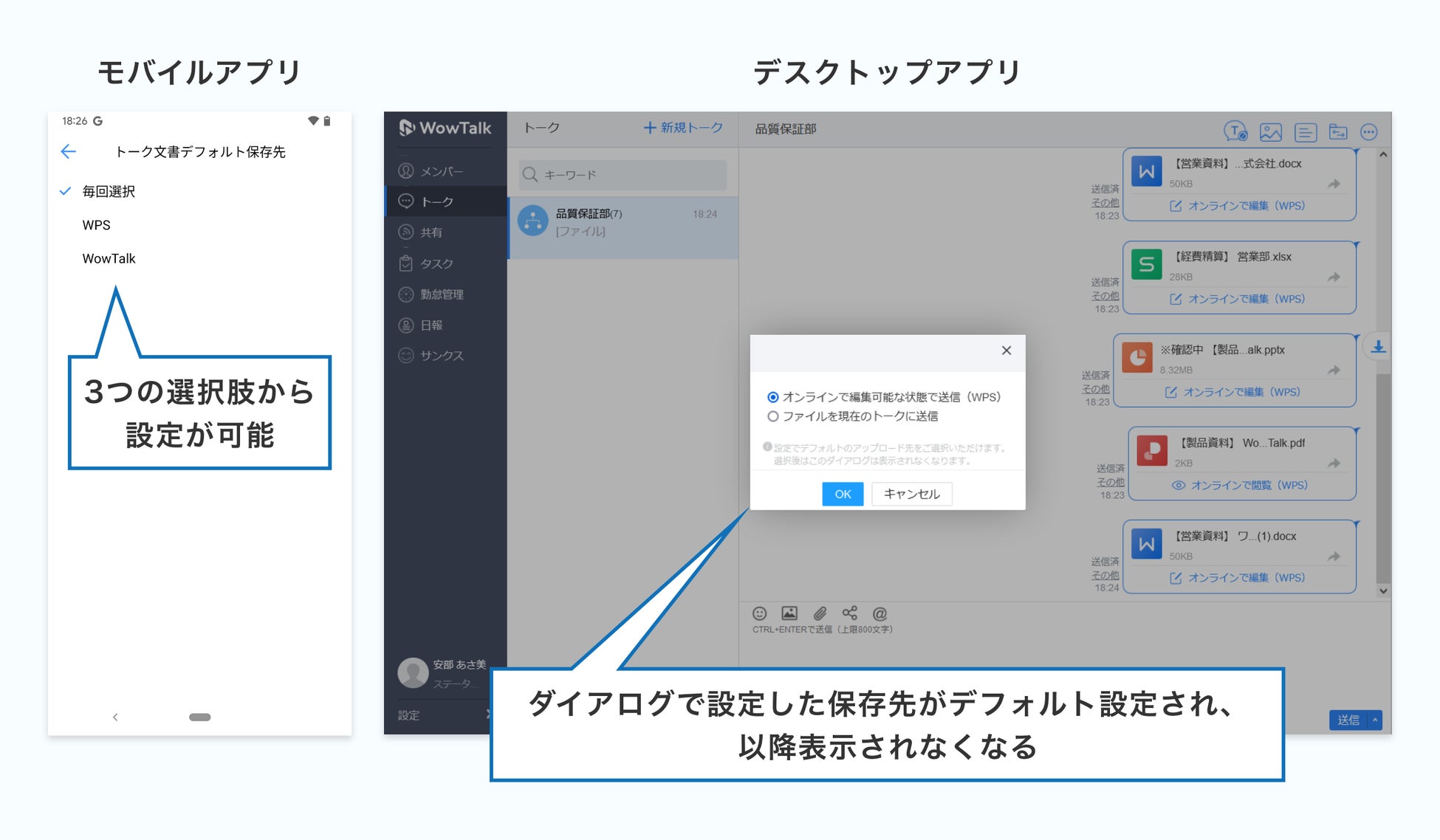 WPS連携機能:ビジネスチャット・社内SNS「WowTalk」とクラウド型オフィス「WPS Cloud Pro」の連携機能
