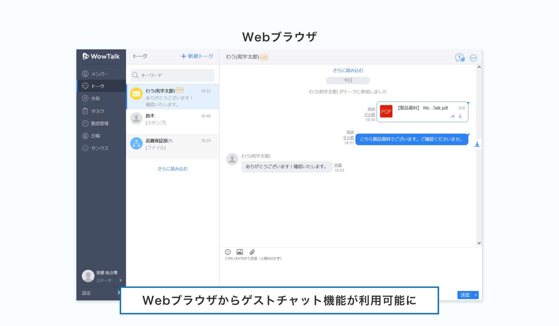 Webブラウザ版に対応したことで、WowTalkユーザーは自身のデバイス環境に合わせてゲストチャット機能を活用いただけるようになりました。