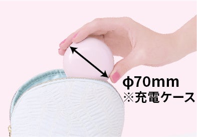 オーロラ仕上げの3色展開(ピンク、グリーン、ホワイト)で、コンパクトながら美しいコスメデザイン。充電中には本体がほのかに光り、柔らかな雰囲気を演出します。パッケージもギフトにぴったりの仕様です。