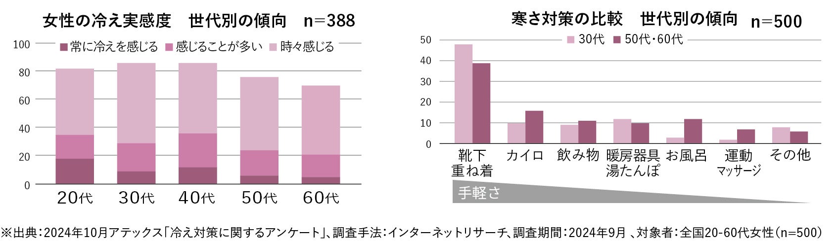 コロナ禍を経てセルフケア志向の高まりが続くなか、多くの女性が冷えに悩みを抱えており、温活アイテムにも多様なニーズが求められています。