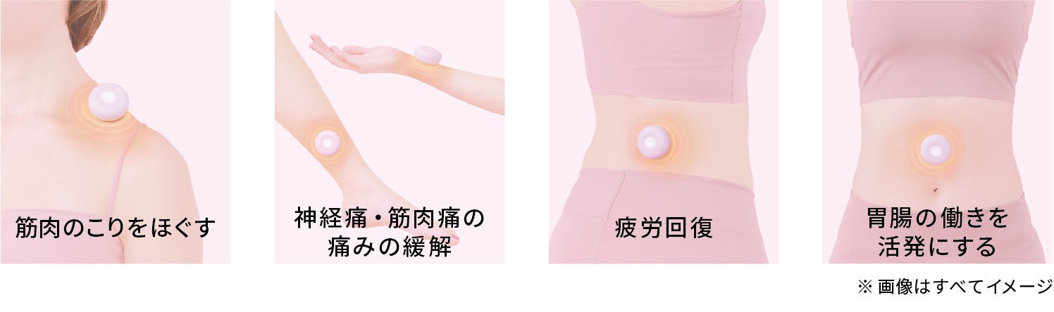 熱により血行を促進し、疲労回復、筋肉のこりをほぐす、神経痛・筋肉痛の痛みの緩解などの効果が期