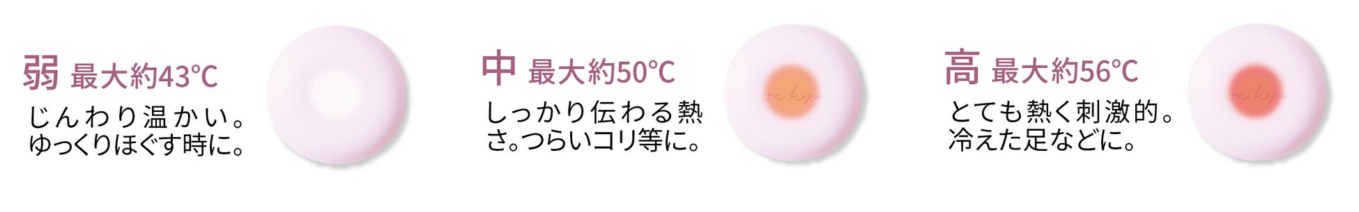 ボタンひとつで簡単に操作でき、温度は43℃、50℃、56℃の3段階に調整可能。じんわり温めたい時