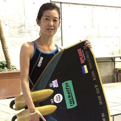 16年前の43歳の時に、イルカと泳ぎたいと思いスクールへ行ったところフィンスイミングと出会い、現在59歳になっても精力的に行っています。世界大会出場は11年振り。過去には日本代表選手として選出されるも、アマチュアスポーツであるがゆえに金銭面で断念。第1期支援者となった昨年は思ったように記録が伸びず、残念ながら代表落選でしたが、今年、ついに夢を叶えて世界大会への切符を手にしました。