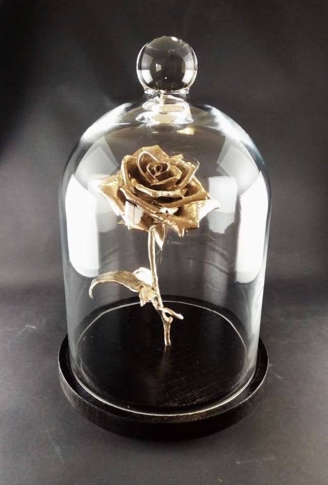 樹脂で造形した後、白金(プラチナ)でコーティング。極薄の花びら一枚一枚を繊細に表現しました。