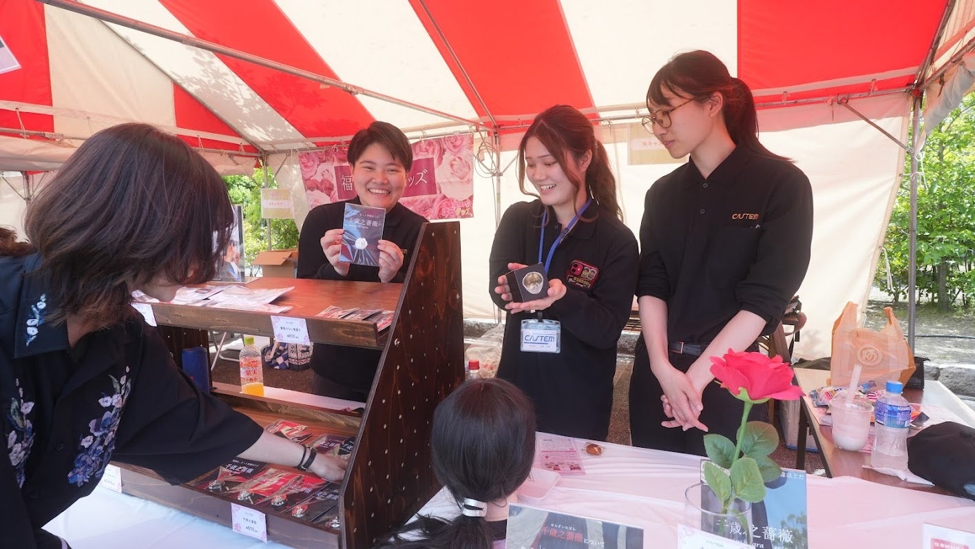 また、キャステムの毎年恒例の新入社員研修では、新入社員がバラのグッズを製作し、福山ばら祭の会場で販売しています。今年もフレッシュな感性で開発したバラのアイデア商品をキャステムブースで販売します。