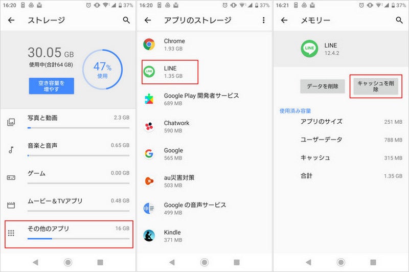 対策6、LINEのキャッシュデータを削除する