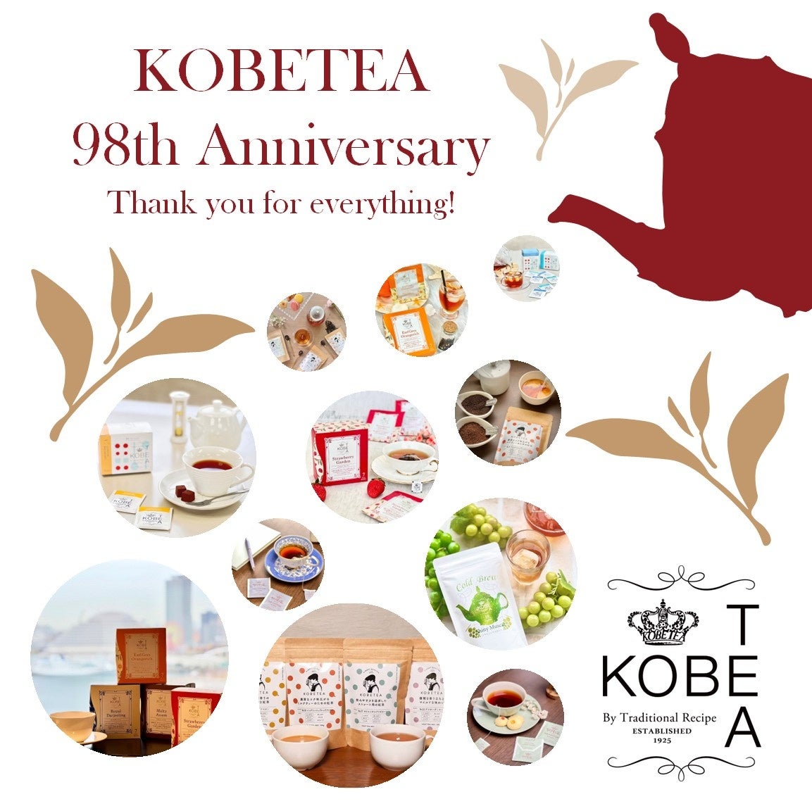 創業98周年を迎え、神戸紅茶では、今後も楽しいティータイムを皆様にご提案できるよう努めてまいります。98周年を迎えた神戸紅茶をどうぞ引き続きよろしくお願いいたします。