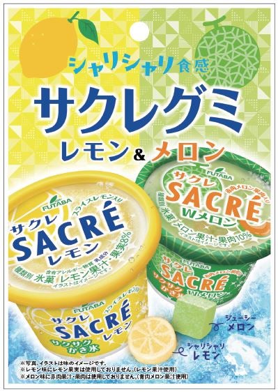 そんないま大注目の「サクレグミ」に、新フレーバーのメロン味が仲間入り!「サクレグミ レモン&メロン」の2種アソート商品として新発売いたします。氷菓に入っている果実を再現し、シャリシャリとした食感のレモングミは輪切り型、ジューシーなメロングミは四角型に。レモンとメロンの爽やかなフレーバーが暑くなってきた季節にぴったりです。