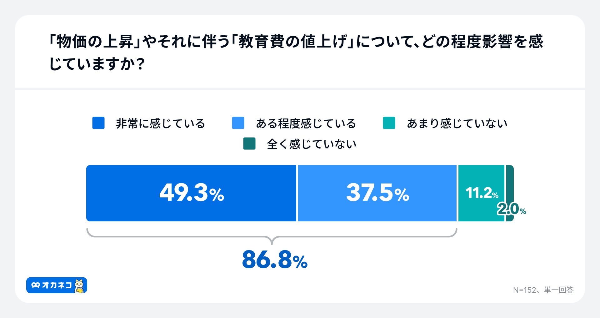 物価の上昇、教育費の値上げに「影響を感じている」86.8%