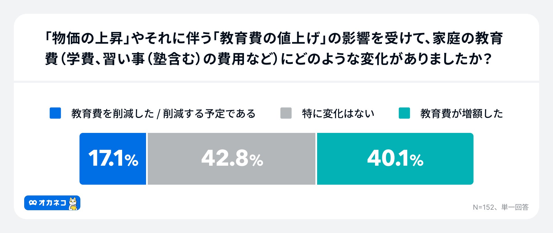 物価高の影響で教育費に変化…「教育費増額」40.1%、「教育費削減」17.1%