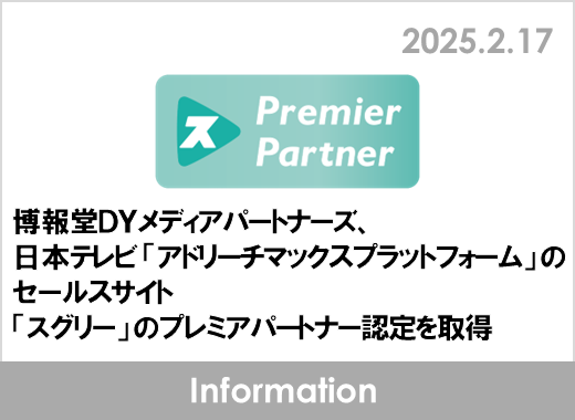 博報堂DYメディアパートナーズ、日本テレビ「アドリーチマックスプラットフォーム」のセールスサイト「スグリー」のプレミアパートナー認定を取得