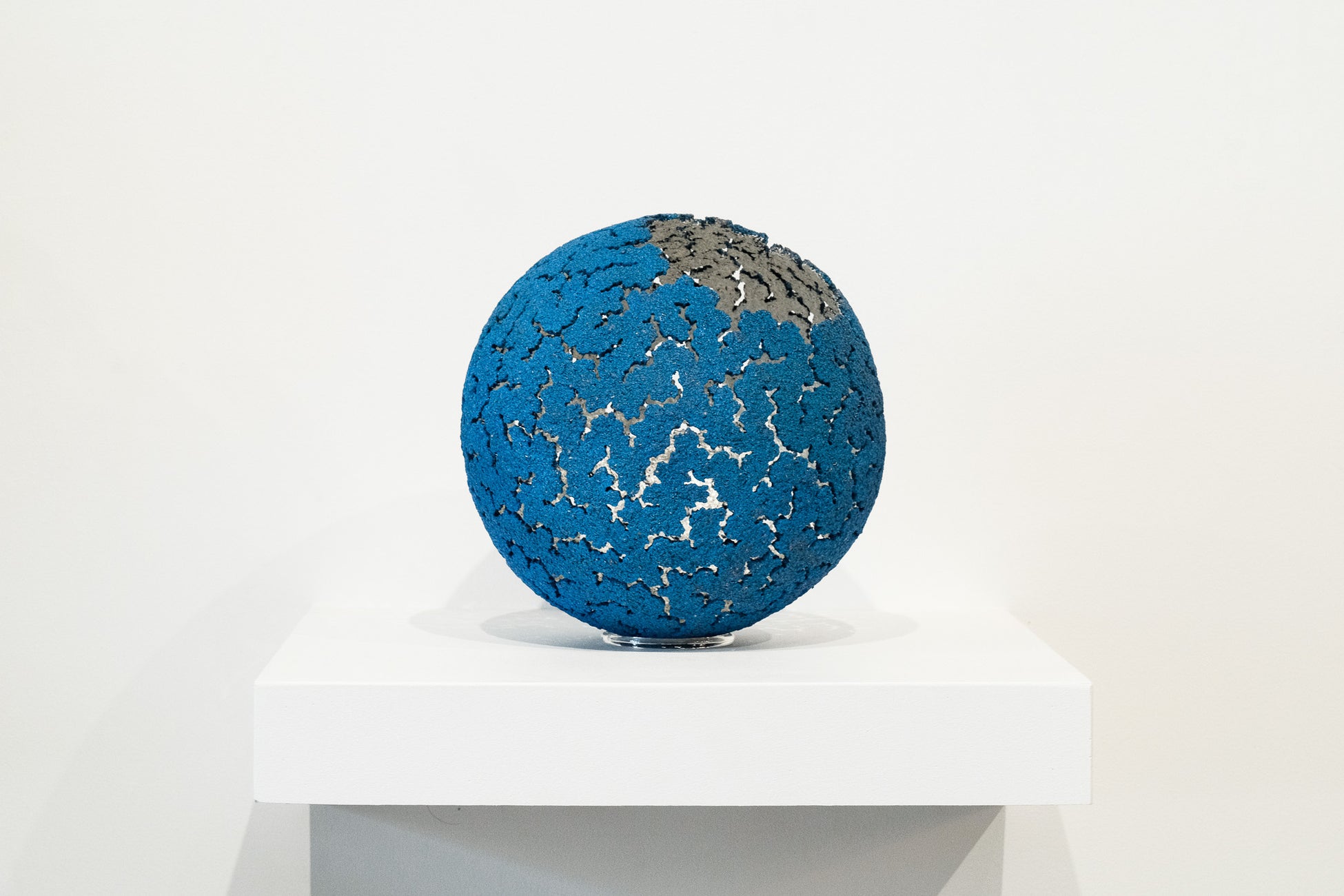 "金属という、無機物の代表とされながら地球の元素のひとつでもある物質を一度完全に溶かし、本来形のない火、水、風といった地球のエレメントや、生命の美しさを表現した形に再構成することで、地球上で起こっている循環を表現しています。 冷たく硬い金属素材が分解され、暖かく有機的な形に再構成されていく様子に、私は感動します。この制作プロセスは、海が大気に変わり肉体が土に還るような、エネルギーの循環や生命の循環と変わりのない現象に思えてなりません。”