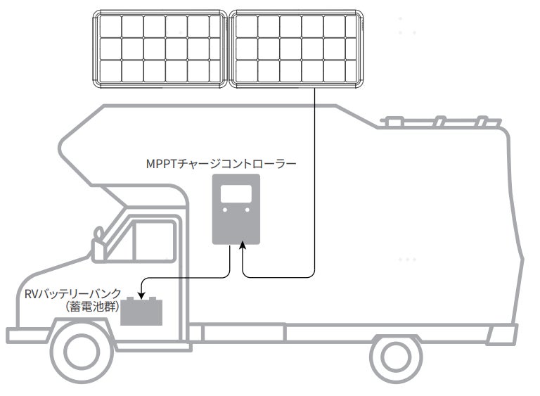 車のルーフキャリアに取り付ければ駐車中・走行中にもポータブル電源を充電できるので、長距離の車旅行や、災害時の車中泊避難の際にも安心です。取付キットが付属しており、お好きな場所に固定設置が可能です。