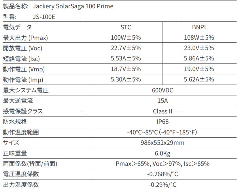Jackery SolarSaga 100 Prime 1 枚 24,980 円(一般販売予定価格 34,800 円) |