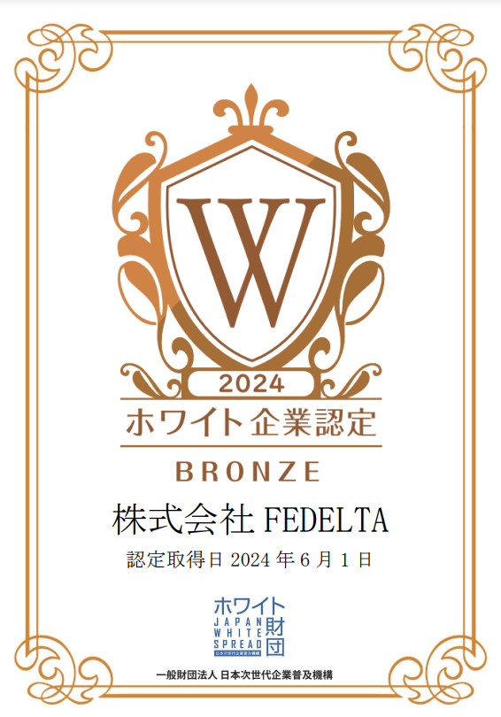 株式会社FEDELTA様が、一般財団法人日本次世代企業普及機構(通称:ホワイト財団)が運営する「ホワイト企業認定 ブロンズランク」を取得しましたことをお知らせいたします。