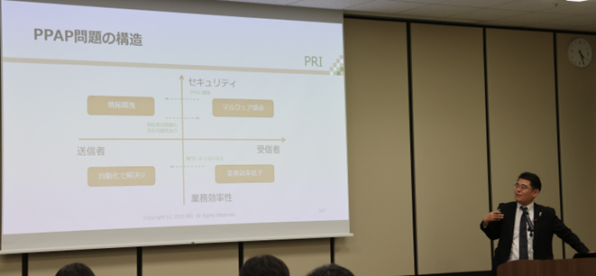 2016年9月頃より、PPAPの廃止の啓発を開始し、2019年にはマルウェアEmotetの感染が広がり、2020年には感染の第2波が到来、パスワード付きzipファイルの添付はマルウェアフィルタを回避するため、Emotet感染拡大につながりました。
