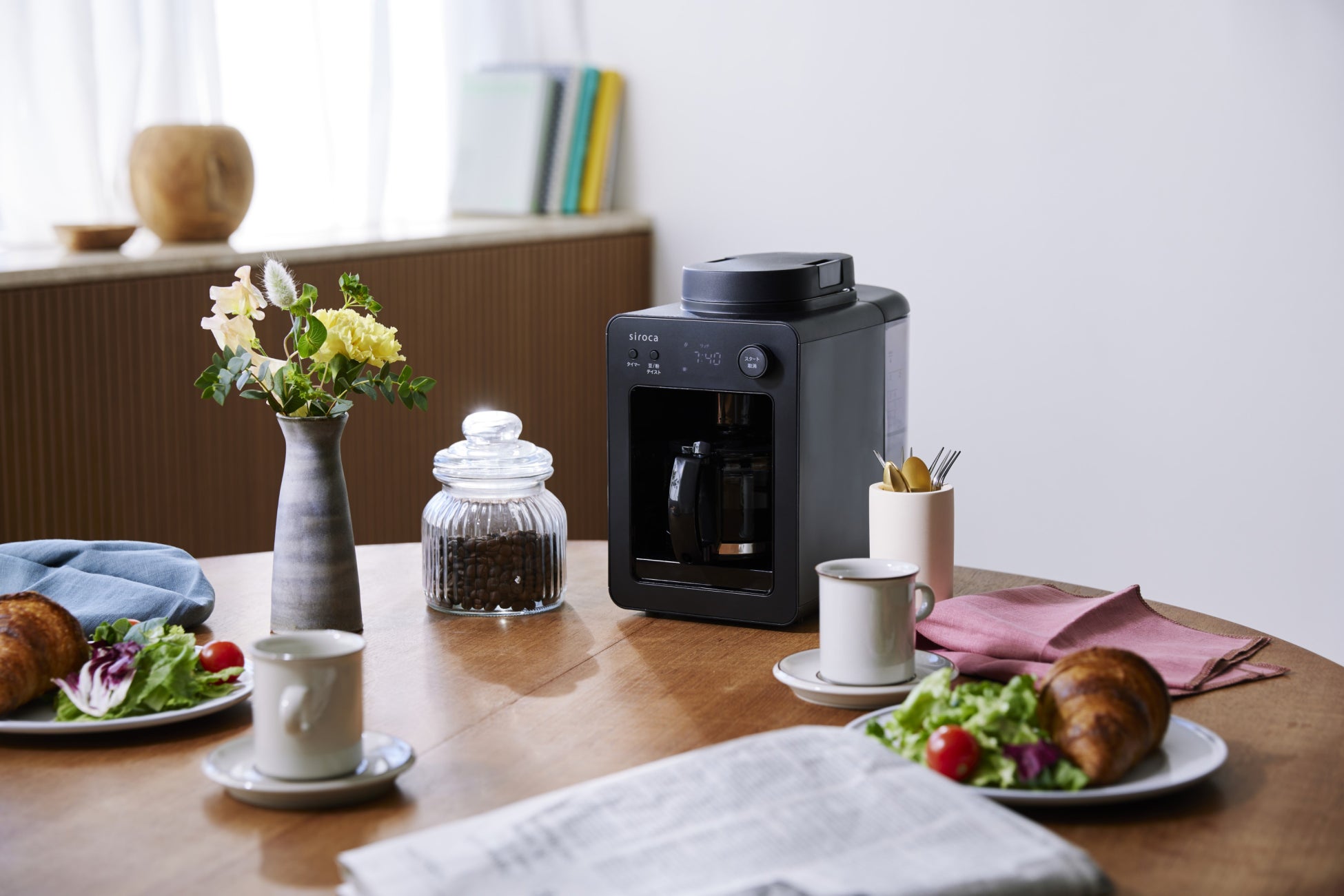 “挽く・蒸らす・淹れる”が全自動で、自宅で本格的な一杯が楽しめる「全自動コーヒーメーカー カフェばこ」。豆を入れ、水を注ぎ、スイッチを押すだけでいつでも挽きたてのコーヒーを楽しむことができる手軽さと、置き場所を選ばないコンパクトさに好評をいただき、多くの方にお使いいただいている製品です。