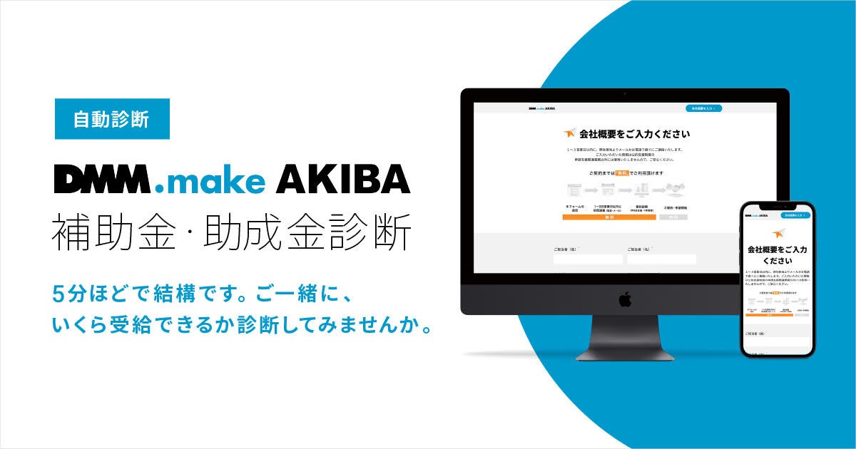 株式会社ライトアップ(本社:東京都渋谷区、代表取締役社長:白石崇、以下ライトアップ)は、秋葉原にて「DMM.make AKIBA」を運営する合同会社DMM.com(本社:東京都港区、会長 兼 CEO:亀山敬司、以下DMM)と業務提携契約を締結し、ライトアップが提供する補助金・助成金自動診断システム「Jシステム」のOEM提供を開始いたしました。Jシステムの活用により、「DMM.make AKIBA」の取引先に、オンライン上でいち早く公的支援制度(補助金・助成金)の情報提供を行うことが可能となります。また、申請希望者はオンライン上で申請手続きのサポートを受けることが可能となります。