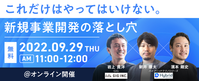 【9/29(木)開催】これだけはやってはいけない。新規事業開発の落とし穴【ハイブリッドテクノロジーズ×GIG】
