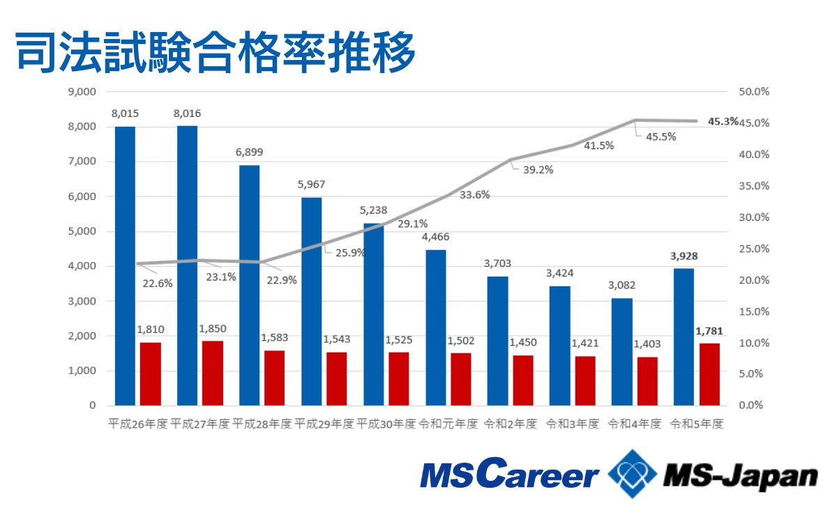 令和5年司法試験の合格率は45.3%!【試験制度改革による合格者数・合格率の傾向】を株式会社MS-Japanが発表。