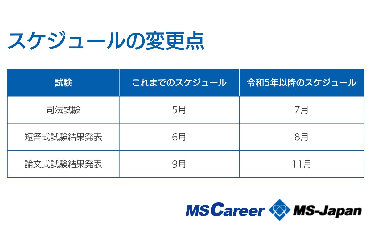 本年度試験より、司法試験のスケジュールが約2か月後ろ倒しになっています。