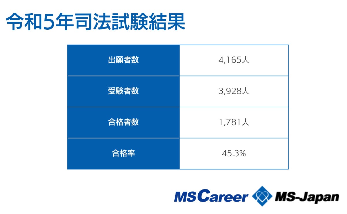 【令和5年司法試験の合格者数は1,781人で、合格率は45.3%】