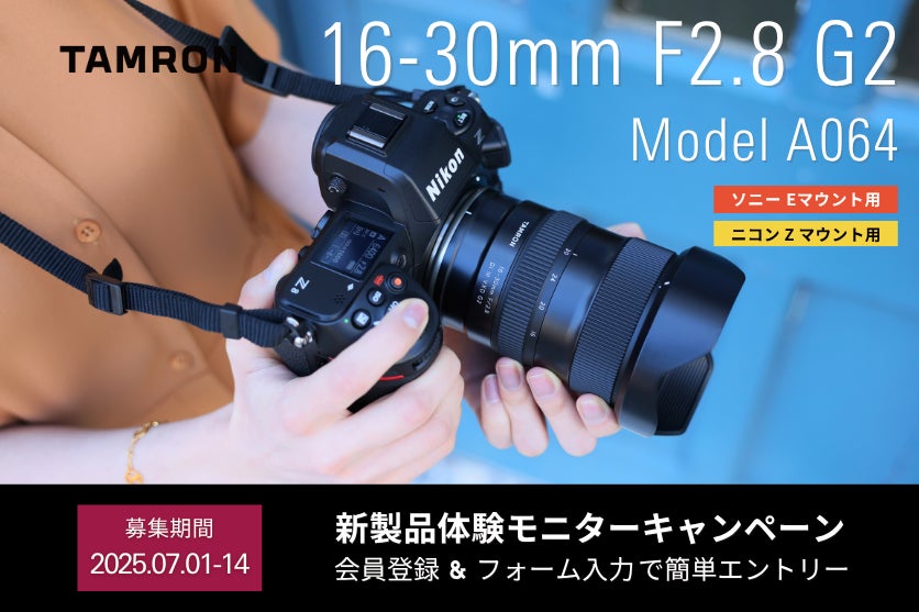 総合光学機器メーカーの株式会社タムロン(本社:さいたま市)は、フルサイズミラーレス一眼カメラ対応の大口径超広角ズームレンズ、「16-30mm F/2.8 Di III VXD G2 (Model A064)」の発売を記念して、体験モニターキャンペーンを実施いたします。