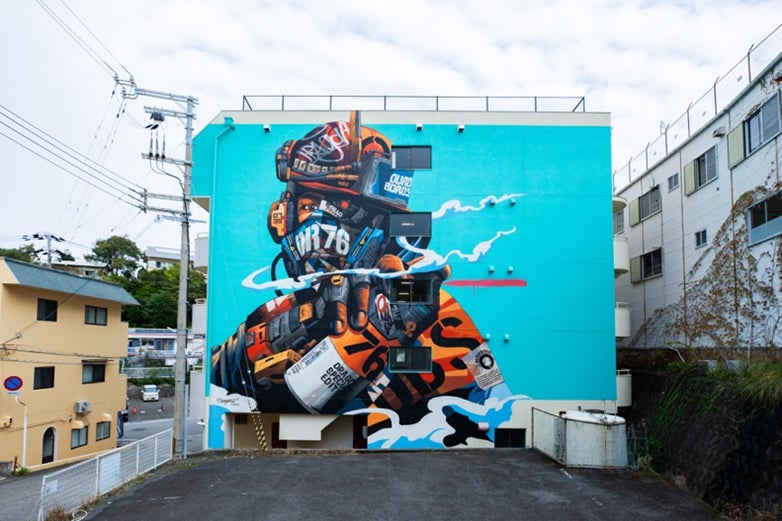 グローバルに活躍するNY拠点のアーティスト Dragon76氏、ハワイ出身のJack Soren氏をはじめ、合計11組のアーティストが白浜に集結し、海辺の町を舞台に各地の壁面で多様なスタイルのアートが織り成されました。