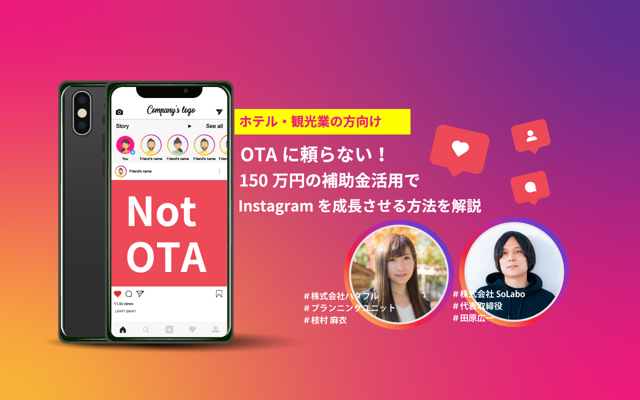 【ホテル・観光業の方向け】150万の補助金を活用したInstagramの運用ノウハウをテーマとしたセミナーを6月20日(火)に開催