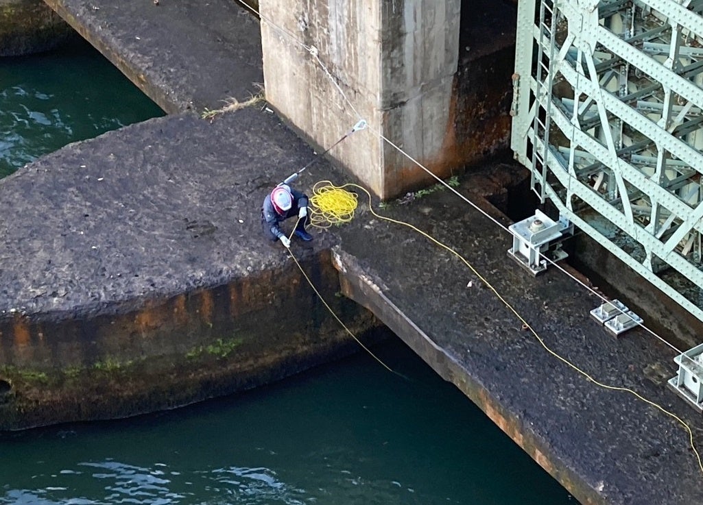 水中ドローンの主な機能は「動く水中カメラ」です。水の中を自在に動き回りながら、高画質のカメラで写真や動画を撮ることができます。そのため「ダムや橋などのインフラ点検」「定置網などの点検」「船底調査」「水難救助や捜索」など、これまで潜水士が行っていた作業の代わりができるようになりました。近年では、モノを掴むアームや土壌採取、清掃など、さまざまな作業も可能になっています。