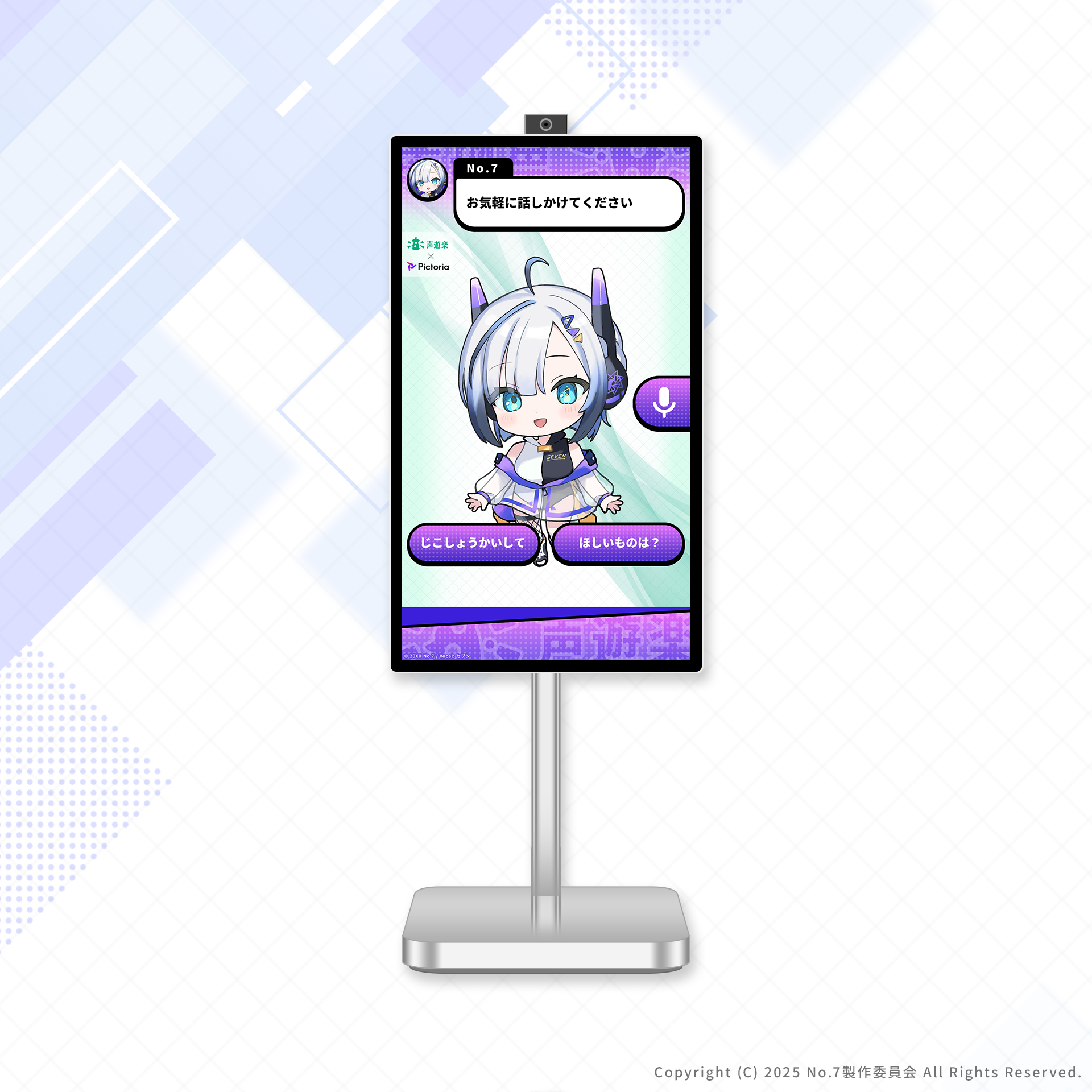 当日は、「声遊楽プロジェクト」のYouTubeチャンネルで解説を務めているキャラクター「No.7」がデジタルサイネージでAIキャラクターとして登場し、来場者の皆様をお迎えします。「声であそび、声でつながる」という本プロジェクトの探究を、AIキャラクターとの対話を通じてぜひご体験ください。