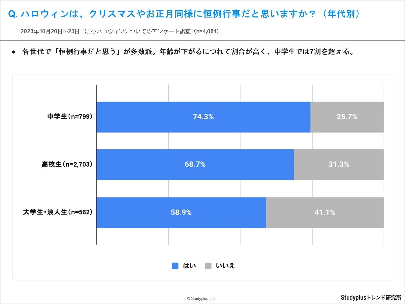 ~4,064名の中高大学生・浪人生にハロウィンに関する調査を実施、低年齢ほどハロウィンを「恒例行事だと思う」割合やイベント参加経験率が高い結果に~