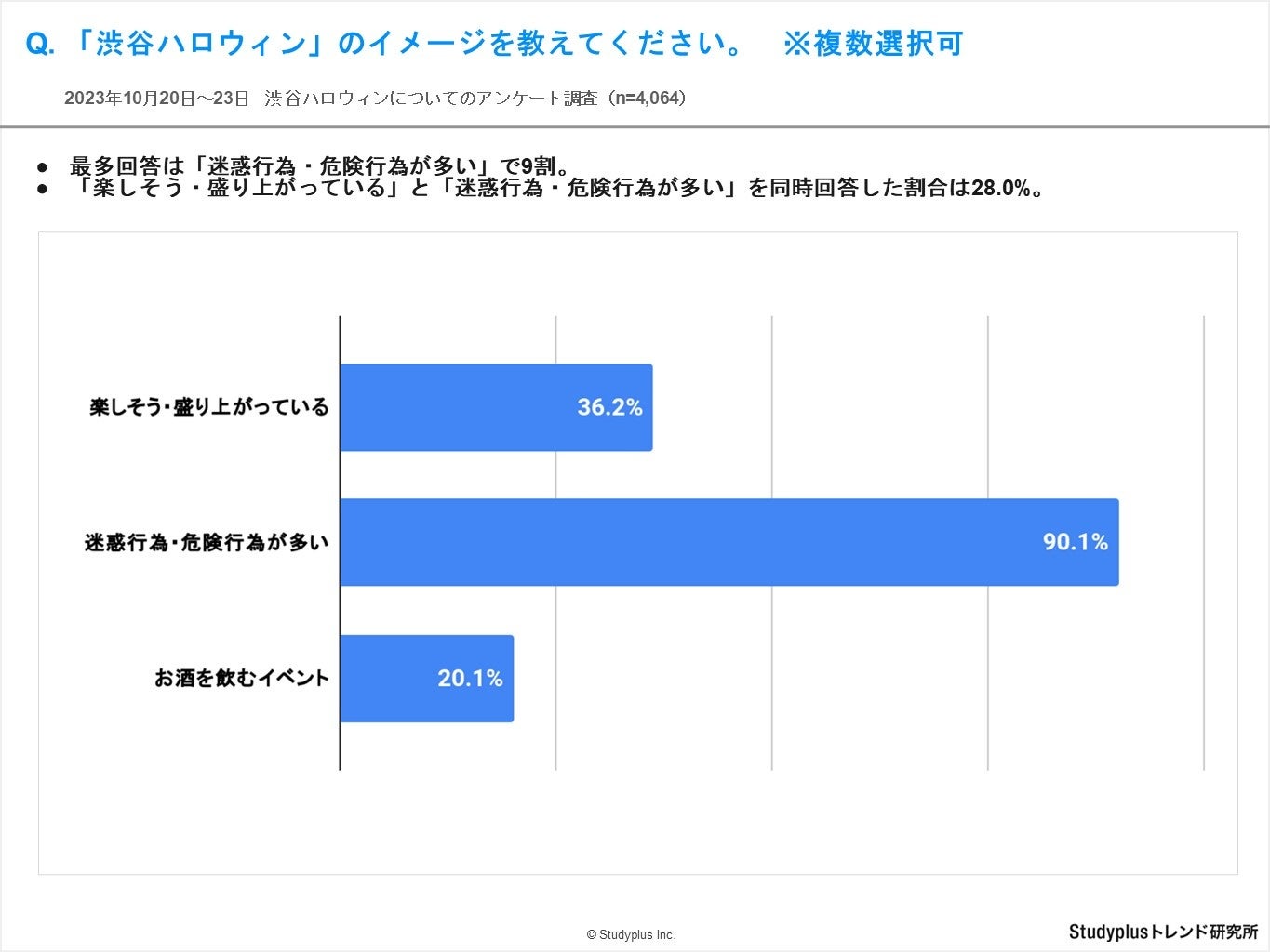 ・「楽しそう・盛り上がっている」と「迷惑行為・危険行為が多い」を同時回答した割合は28.0%。