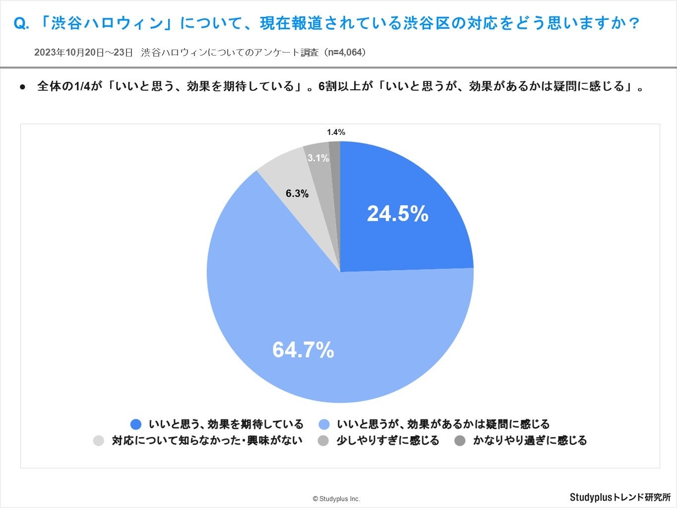 “渋ハロ” に対する渋谷区の対応、6割以上の学生が「いいと思うが、効果があるかは疑問に感じる」と回答