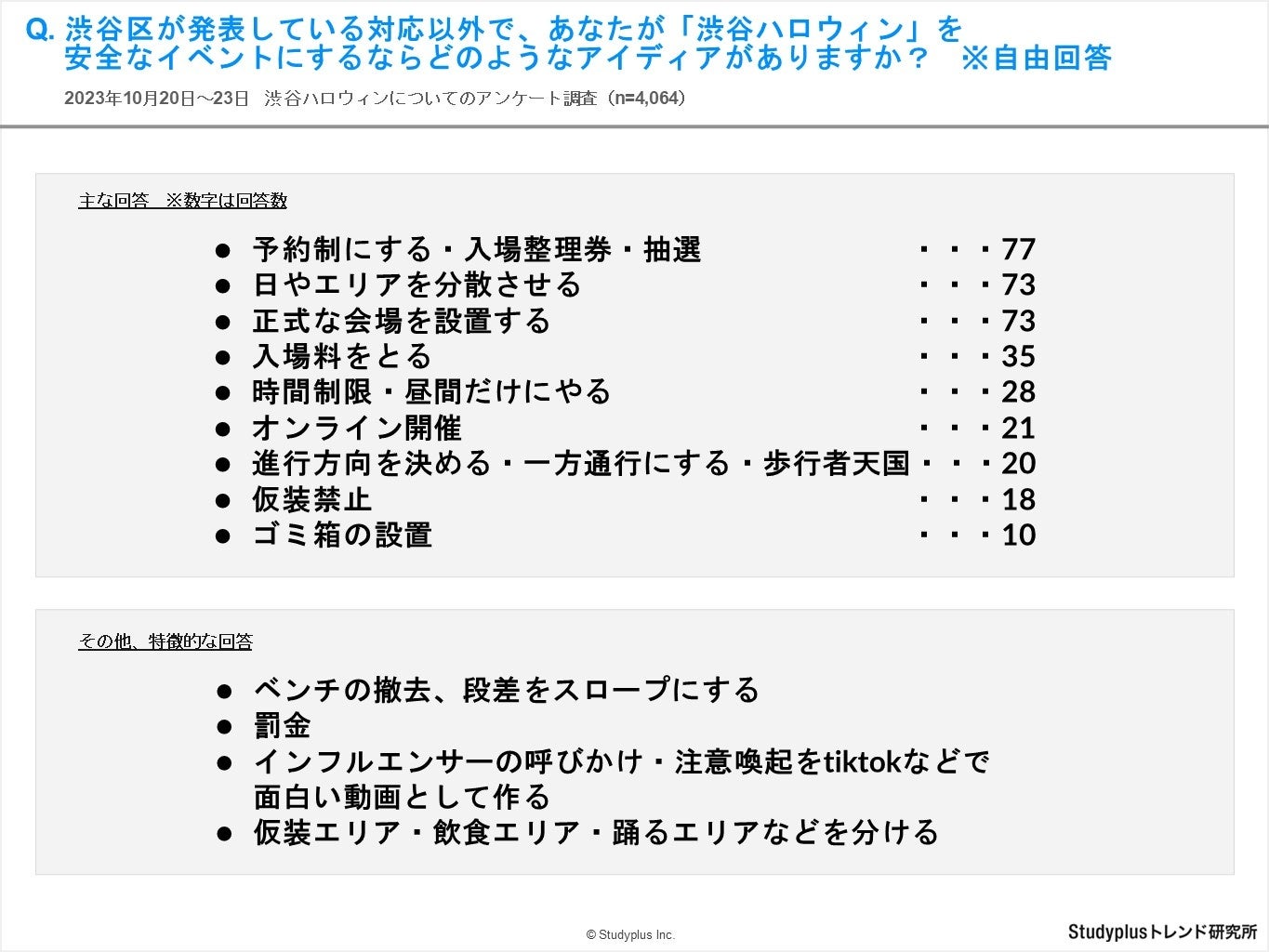 ・渋谷区が発表している対応以外で、あなたが「渋谷ハロウィン」を安全なイベントにするならどのようなアイディアがありますか? ※自由回答