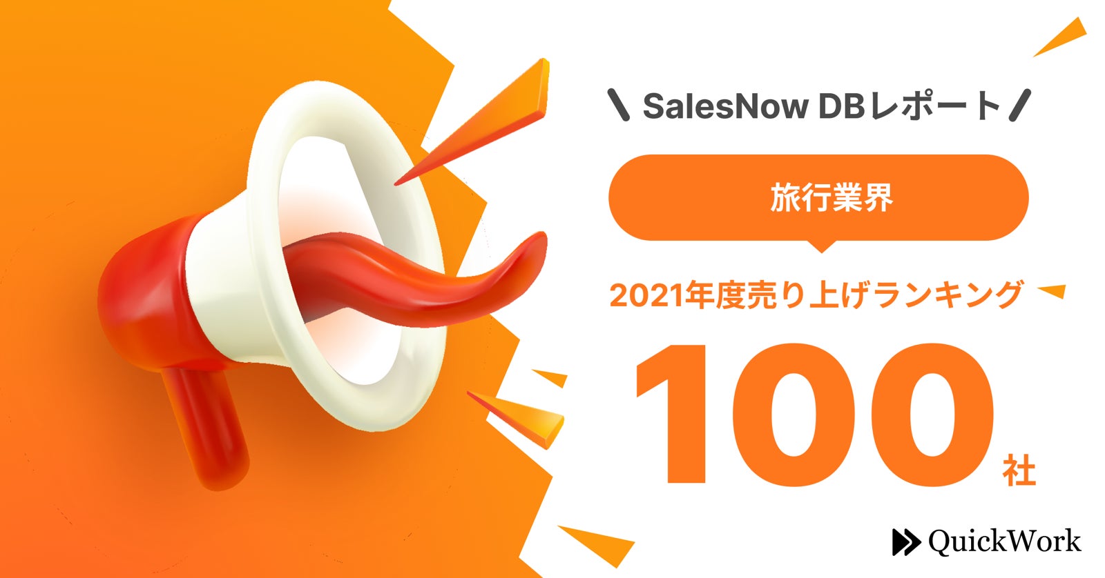 旅行業界の2021年度売上ランキング100社(SalesNow DBレポート調べ):