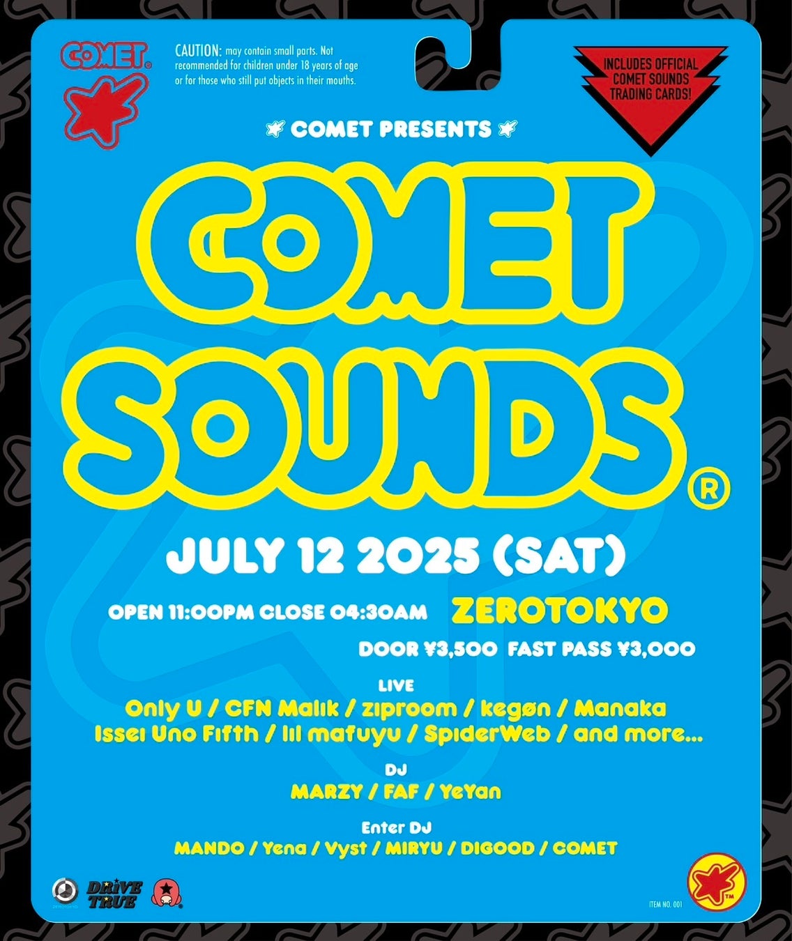 2024年5月、その名の通り彗星の如く東京のストリートシーンに現れ、今や各方面から注目を集めるカルチャー誌『COMET MAGAZINE』を創刊したクリエイティブクルー・COMETが初めてのフルディレクションとなるイベント”COMET SOUNDS vol.1”を7月12日(土)、新宿・ZEROTOKYOにて開催する。