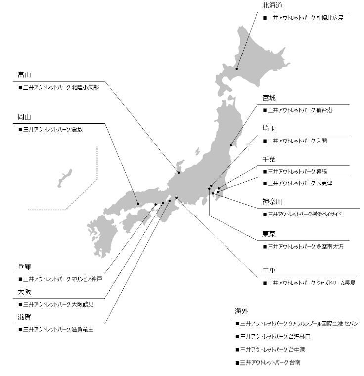 ●三井不動産の三井アウトレットパーク(2022年2月時点)