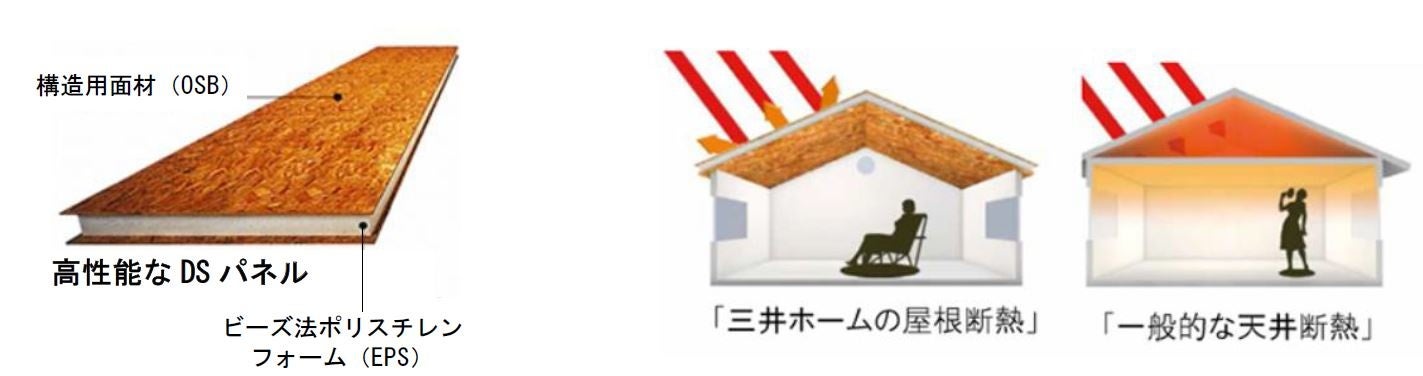 オリジナル断熱構造材「ダブルシールド(DS)パネル」を採用しています。夏場の遮熱や冬場の保温に高