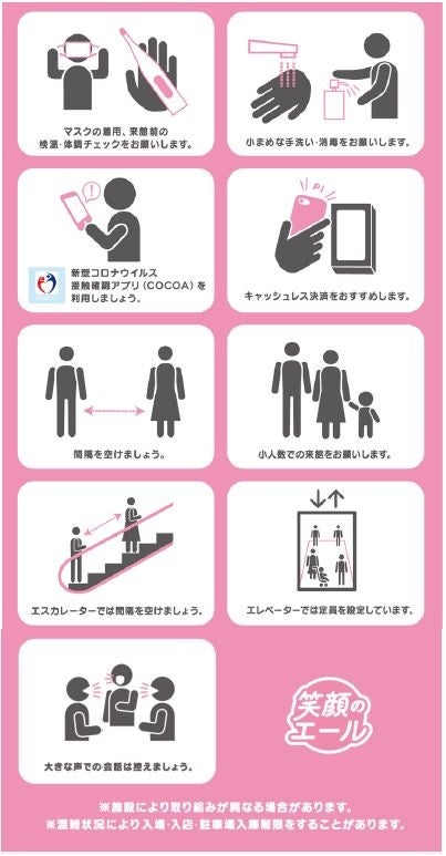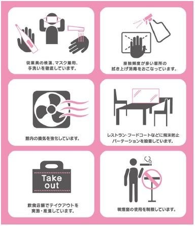 三井不動産グループが運営する商業施設では、新型コロナウイルス感染拡大防止のため下記をはじめとした様々な取り組みを実施しております。