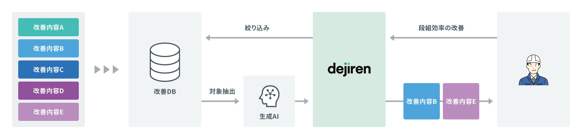 しかし、100年に一度の変革期と言われている自動車業界(※)で、DX推進による更なる業務効率化や生産性向上を実現のため、収集・蓄積されたデータの高度な活用により、人の判断や行動を促し意思決定を支援するための新たな仕組みの構築を検討していました。そこで、生成AIを取り入れたデータ活用により、個人の経験や勘によるばらつきを解消し、製造現場におけるベストな判断と行動を促せるような仕組みの実現に踏み出し、「dejiren」を導入しました。